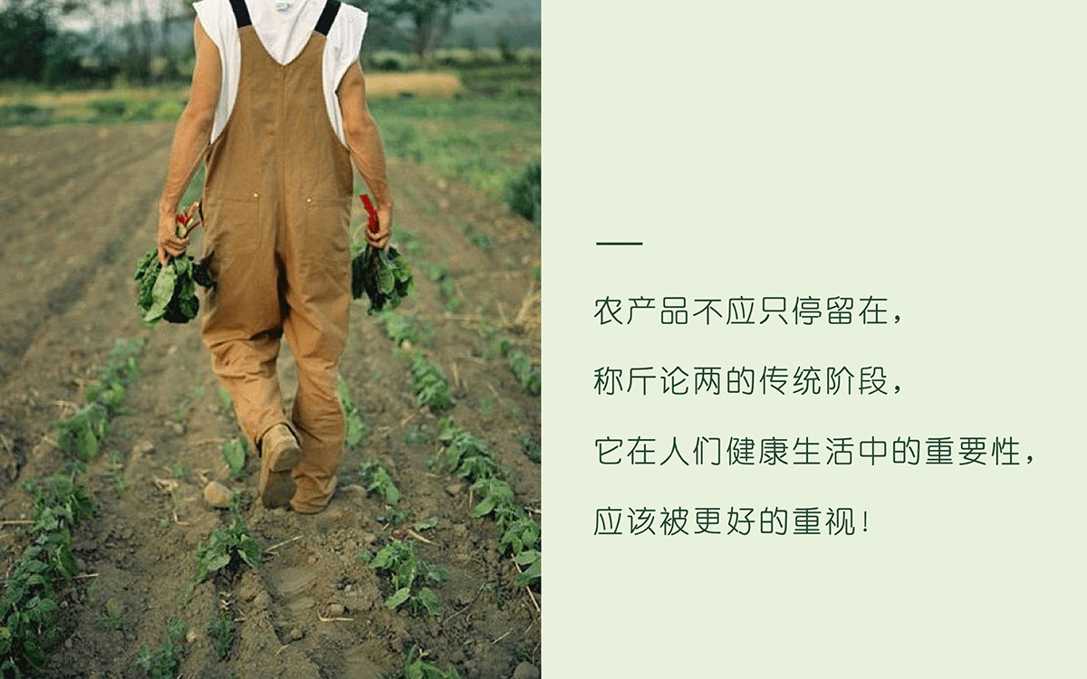 幫助良心企業(yè)塑造誠實(shí)品牌 農(nóng)產(chǎn)品不應(yīng)只停留在,稱斤論兩的傳統(tǒng)階段, 它在人們健康生活中的重要性, ?應(yīng)該被更好的重視。 這一次我們接受委托的項(xiàng)目,是關(guān)乎大眾身體健康和對健康食品認(rèn)知有盲區(qū)的品類:有機(jī)食品,這讓設(shè)計(jì)團(tuán)隊(duì)深感責(zé)任在身,如何誠實(shí)、客觀的塑造品牌形象,是這一次設(shè)計(jì)項(xiàng)目需要解決的根本問題。